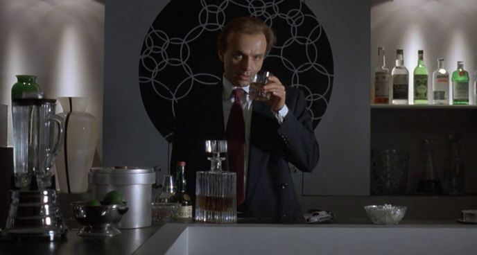 One of the more surprising aspects of Bound’s visuals was how much I felt the architecture was inspired by giallo pictures and more specifically Dario Argento. The architecture of the home’s is very sleek, floral and edged much like Suspiria but without the colour palette. Instead Bound goes for the traditional blacks, whites and greys of noir, and even colours like red seem muted and only really shine when blood splatters against white.