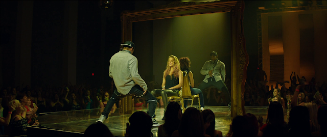 The most lavish sequence in the entire movie is the final set piece where 2 dancers mirror each others moves in a sequence that’s like if Cocteau and Minnelli decided to craft a scene around stripping together. It is gorgeous, perfectly choreographed and resonant. Despite all of the attention paid to dancing one thing becomes clear, Zoe’s face is the true focal point of the action. She’s always lit just a little bit brighter than everything around her and the framing and choreography work around her reaction. There is one moment where Mike picks her up and places her head between his legs and there’s a zoom in on his face, but then goes right back to her own reaction. The camera pulls out from the action to showcase the symmetry and dancing, but always comes back looking for her approval by focusing on her face. She goes from embarrassed to flattered to enraptured by the time things close up and Mike asks her if she got her smile back. She did.
