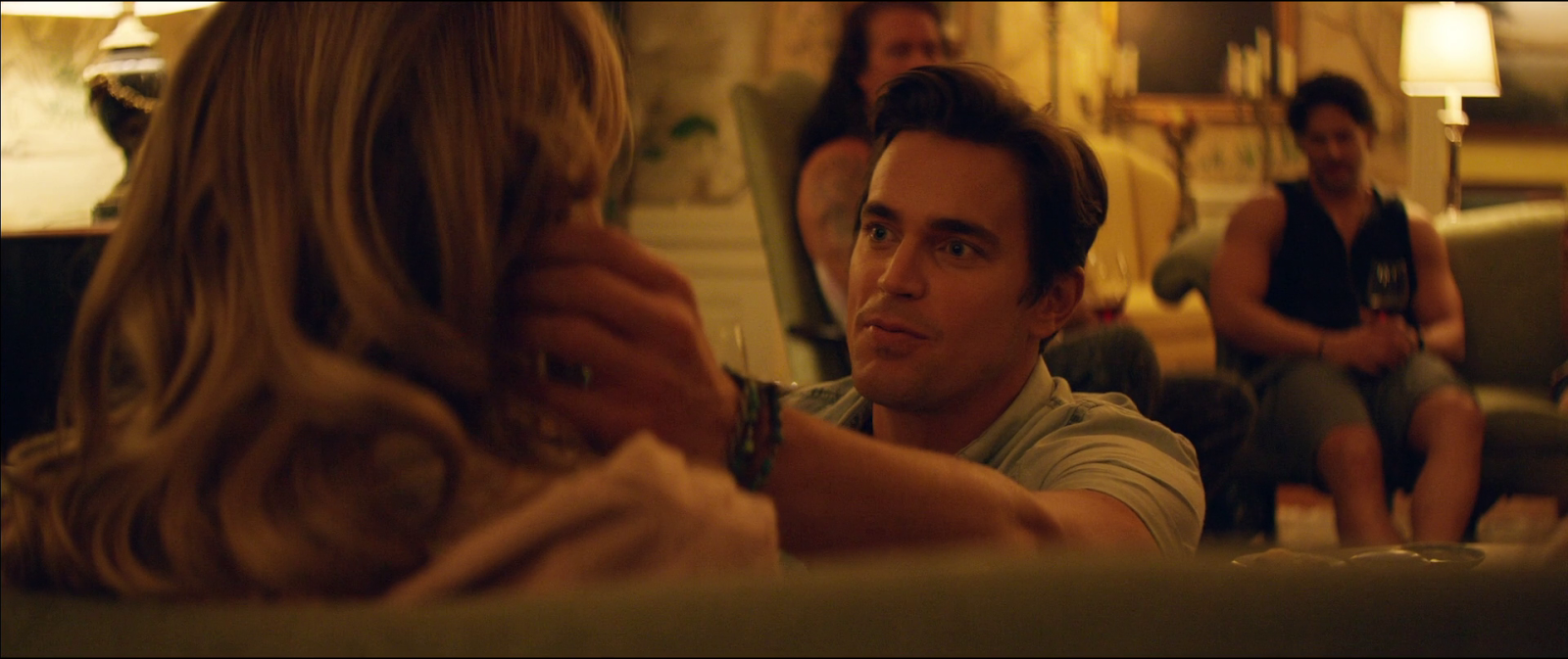 Andre and Ken (Matt Bomer) talk about the joys of making women happy in a scene preceding the one in the above screencap. Andre says “We can be healers. We can give these women what they want just by listening to them. Their boyfriends and husbands don’t but we do.”. All of that is put into effect directly in the next scene. Mike and the Boys meet back up with a group of girls they befriended at the beginning of the movie, because they needed a place to crash. What they find upon arriving at the lavish mansion is that the Zoe’s (Amber Heard) mom (Andie MacDowell) and her girlfriends are having a girls night out. They’re all drunk. They’re all impressed with the men that have just walked in their door, but what could have been an awkward situation quickly turns into communion.