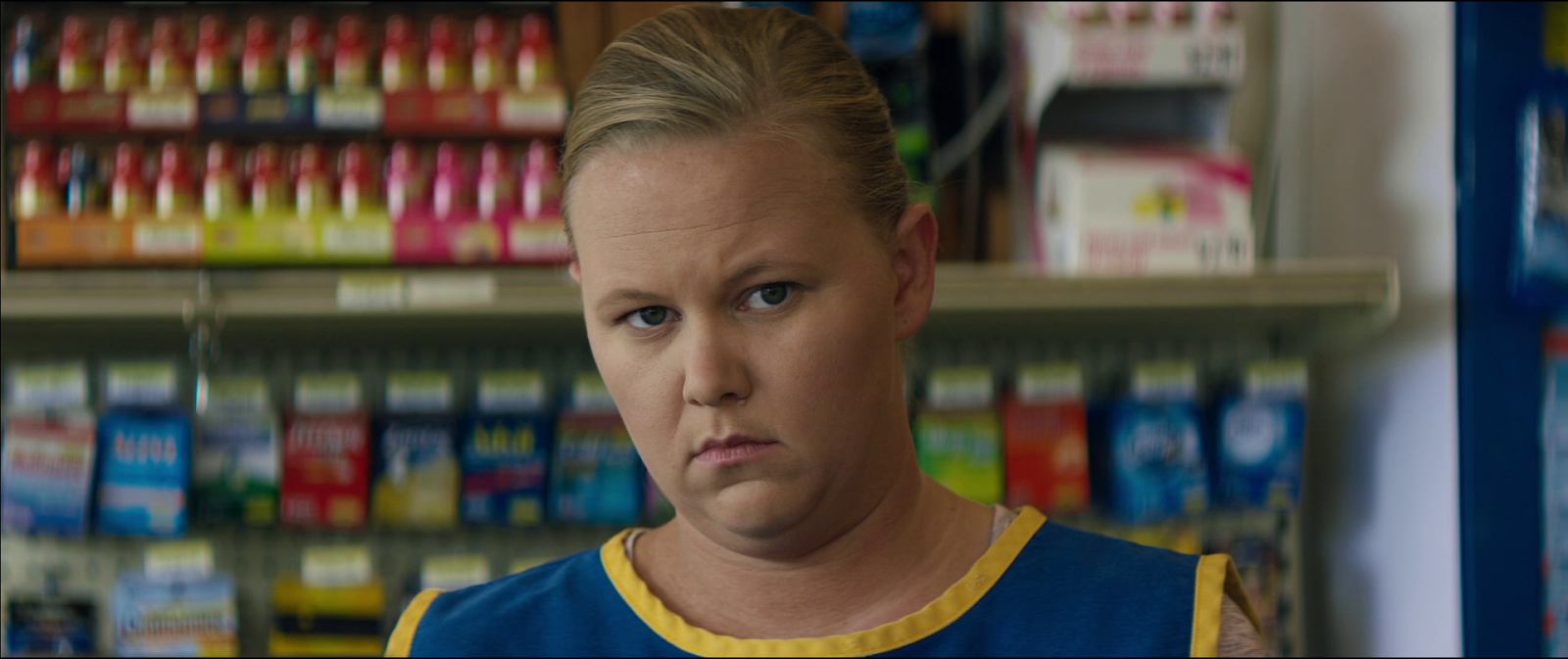 There isn’t a whole lot of room to play around with camera movement or an elaborate dance routine due to the confined nature of the aisles in the gas station, but graceful camerawork, editing, and image selection make the scene pop exactly the way it should. The scene begins with Ritchie being unsure of himself as The Backstreet Boys “I Want it that Way” begins to play over the radio station. Ritchie begins to sway his hips and ass in tune with the song to get her attention, but she’s still preoccupied with her phone. The camera sweeps back down the aisle and when the songs first drums kick in Ritchie does a turn and pops open a bag of cheetoes all over the floor. There is a cut to his face and hers. The mess finally got her attention. She seems unamused, but Ritchie’s going for it. At the very least he’s livening up her mundane day. The scene follows Ritchie to a pepsi machine, and there’s a subtle zoom on Mike and the boys cheering him on. This is his moment to really take a chance. He takes a water bottle out of the machine and simulates ejaculation with the bottle right when the song is hitting the biggest part of the chorus. Perfect. Ridiculous. His boys think this is BRILLIANT in all caps and Mike is screaming “yes! yes! yes!” outside as Ritchie dumps water all over himself. The camera follows Ritchie right back up the aisle as he takes his shirt off for the girl (who still appears unimpressed) and now he’s as vulnerable as he can be, until he starts humping the floor. She stares down at him, he looks up into her eyes. Ritchie thinks he has things in the bag. This is what girls want right? He finally asks her how much for the cheetoes and water, and then she smiles. Mission Accomplished.