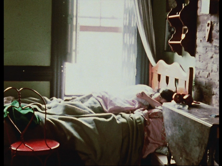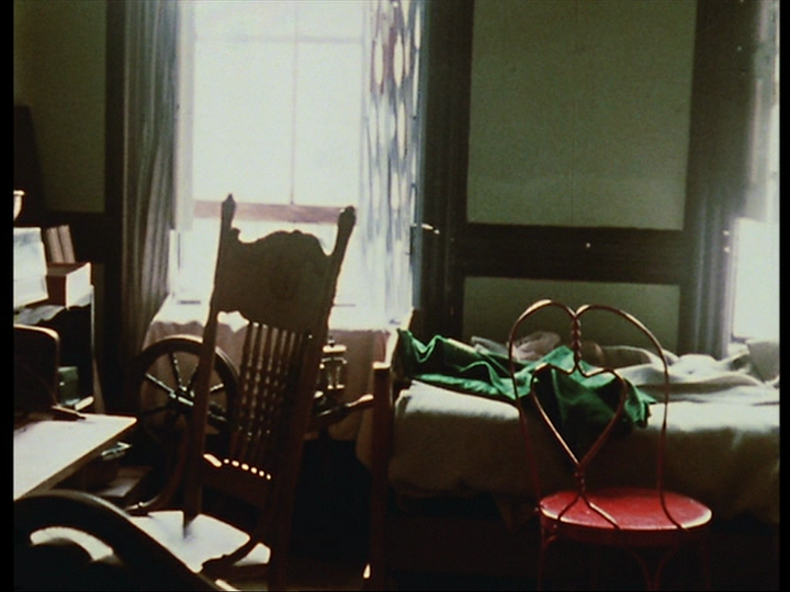 La Chambre is just the beginning of Chantal Akerman questioning how cinema functions, and offers a glimpse into more of her instinctive techniques as a filmmaker. While, Saute Ma Ville, may have been an introduction to her feminist themes La Chambre offers more in the way of what we’ve come to know as Chantal Akerman’s form. The attention to space and how movement effects image and narrative were brought to full light in Hotel Monterey, and in that way La Chambre sometimes feels like a test run for a fuller picture, but the attention to objects, rooms and the people within them would be of fascination to Chantal Akerman throughout her career all the way up through Almayer’s Folly, where she finally sought freedom from interior spaces. The interior lives of women can be seen in her first two films as well, even if La Chambre rejects any traditional narrative filmmaking technique, and positions Akerman as a subject in her films. Akerman’s resolute attention to portraying women came first through portraying herself. By questioning cinema and distancing her filmmaking from a popular narrative mode she gained a reputation as a difficult filmmaker, but she’s inviting you into her worlds and into herself, even if whatever she’s doing is simple, such is the case in La Chambre.