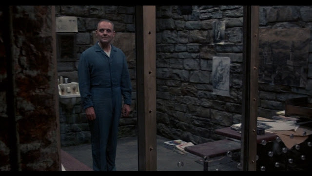CG: Yes, the illusion and manipulation are there in performance and aesthetics with Lector, heightened, just like they are there with Clarice in making her becoming a heroine gaining confidence and emerging as the hero over the course of the film. Clarice is not really a badass in presentation or line delivery, Lector calls out her Appalachian twang, but what is badass is her uncovering things in her case as we watch and are along for the ride with her. Foster is such a great presence to connect with, a character that now often is missing in a lot of genre films. It either has to be an anti-hero that must be bad ass or so corrupt the audience is put in the position to probe than relate. Or it’s just an uninteresting goody two-shoes cipher. Even Hannibal, you note the romanticism and seductive way Demme presents him and how Hopkins plays the role, feels missing from cinema. I think movies & TV feel more in the gray area now, showing that not all good is good and bad is bad. That has its pluses as nothing should be simplified, but it feels like characters in such narratives take a hit in just being ‘is he or she a good guy or bad guy or both’. Plus the deluge of true crime narratives have made way for more realistic villains and serial killers, that is more chill to the bone than engrossing. The Silence of The Lambs is not really social realist despite its source material being based on the real life serial killer Ed Gein (who also inspired Psycho). It’s theatrical, wearing its paperback best seller colors proudly while exploring a lot of territory that makes it the best film of its kind.