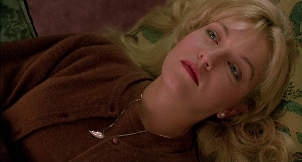 Laura Palmer is the only innocent in the wake of all this tragedy. In the work of David Lynch the image of Sheryl Lee and Laura Palmer outside of Twin Peaks rings with angelic grace. In Wild at Heart (1990), Sailor (Nicolas Cage) and Lula (Laura Dern) are starstruck lovers pulled apart by circumstances completely out of their control, but throughout it all, their love persists. It’s perhaps Lynch’s most simplistic film in terms of plot, following a linear, if jagged, path from sweeping romantic love, to heartbreak and back again, bathed in the romanticism of 1950s culture, and fused onto a distinctly 1990s backdrop and flavour. Near the end of the film, after Sailor has gotten out of prison, he meets up with Lula once more only to break her heart, and tell her they can’t be together, but an angel intervenes in the way of David Lynch’s own Glenda the Good Witch played by none other than Sheryl Lee. David Lynch is obsessed with The Wizard of Oz going as far as to call it a “life-changing film” in Chris Rodley’s career-spanning book of interviews with the filmmaker, Lynch on Lynch. Sheryl, as Glenda, convinces Sailor to go back to Lula, thus being a guardian angel for two potentially brokenhearted souls. In Twin Peaks: Fire Walk with Me, all Laura ever wanted was an angel.